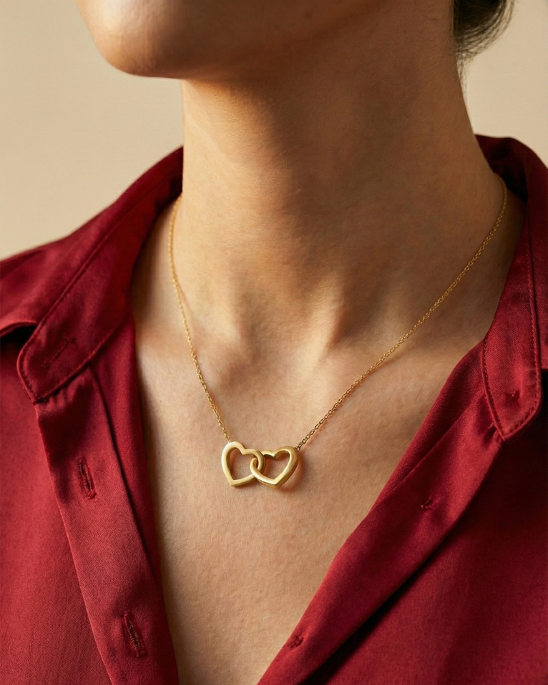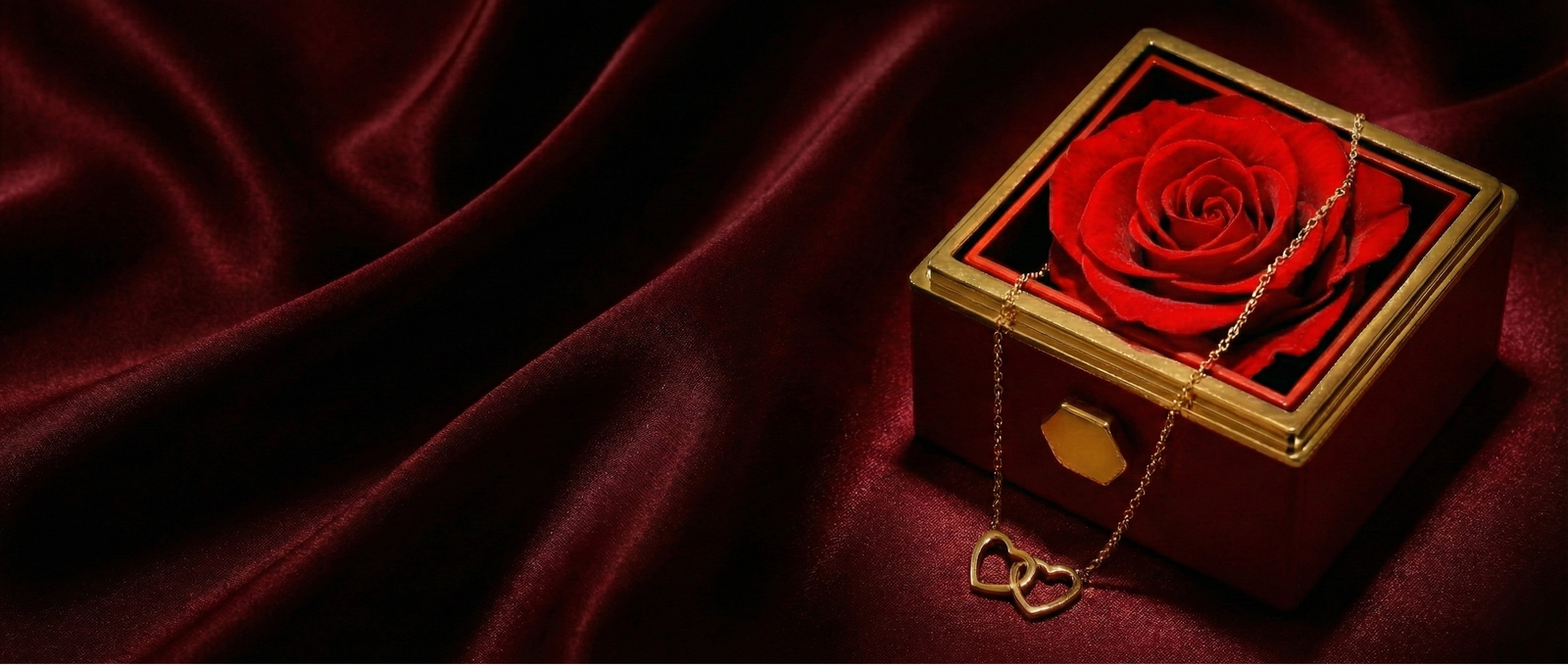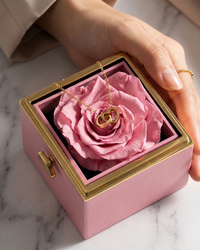 Gaveæske med evig rose og dobbelt hjerte-halskæde